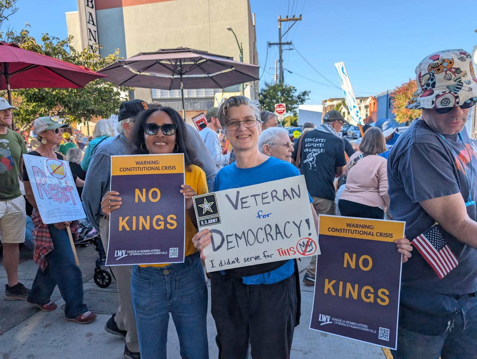 The League of Women Voters of Piedmont congratulates Kandea and Lorrel and looks forward to rolling up our sleeves to do the work of the League! |  | League of Women Voters of California, Co-Presidents Kandea Mosley Gandhi and Lorrel Plimier attend the "No-Kings" protest in Albany, CA on Saturday, October 18, 2025. | | VOLUNTEER OPPORTUNITIES