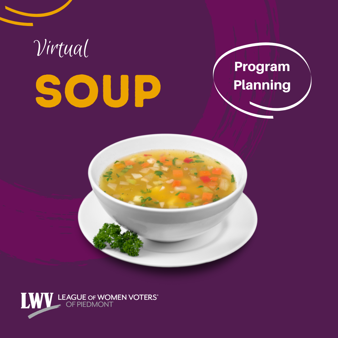 LWVP needs you! Looking to get more involved during this midterm election year? We have both year-long and once in a while positions available. Visit our website to learn about our year-long positions. We also regularly need help with voter education, voter registration, observing city council and school board meetings, and more. Democracy requires constant participation and your help can make a difference. Interested in learning more? Send an email to lwvp@lwvpiedmont.org or stop by one of our coffee or cocktail hours.